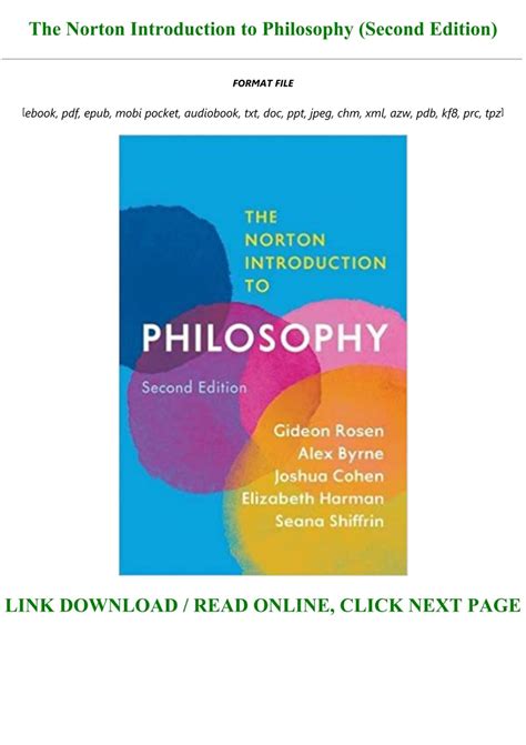 Download The Norton Introduction to Philosophy Second Edition Epub online is a convenient and frugal way to read The Norton Introduction to Philosophy Second Edition you love right from the comfort of your own home. Yes, there sites where you can get Epub "for free" but the ones listed below are clean from viruses and completely legal to use.